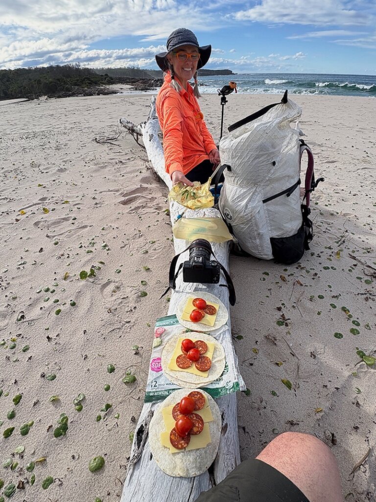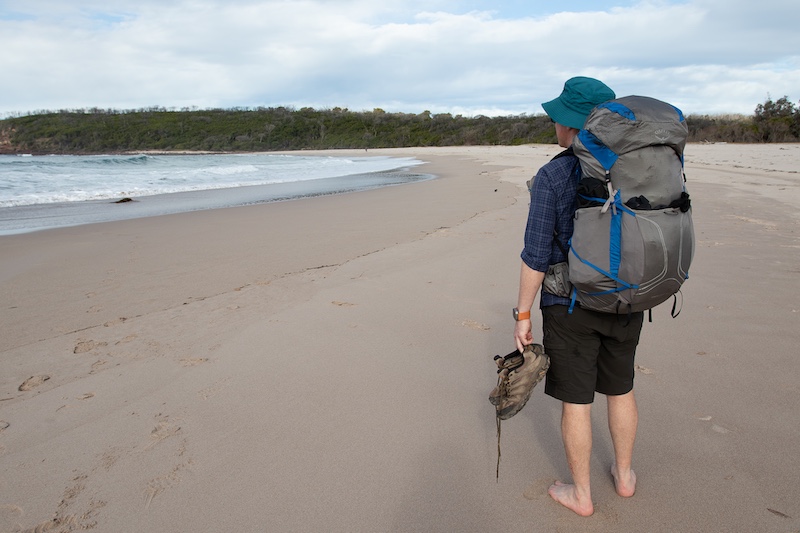 Onwards, the beach at Saltwater Creek proved the perfect spot for lunch, after a wet-foot crossing on the northern end. Hidden behind the trees is one of the old (car) campgrounds of the walk. It’s popular with visitors and often books out in the warmer holiday months. It’s ongoing access to sites like this that increases flexibility in how you walk the L2L, by adding external support or the ability to meet up with friends along the way.