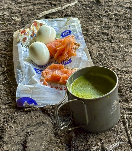 For coffee, I used three Laughing Pug coffee drip bags—a brilliant invention for proper coffee in the bush without carrying my beloved Aeropress. I also packed three black tea bags and three herbal tea bags for variety and evening drinks.