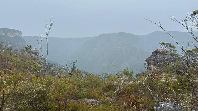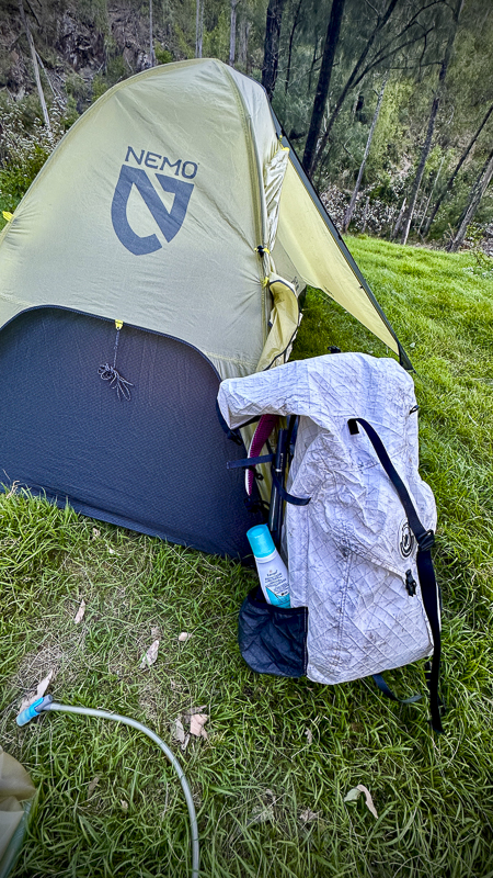 An empty goon bag weighs basically nothing when empty, but lets me carry extra litres when I need to. And in Kanangra, where water can be scarce (or non-existent) along the ridgelines, that flexibility is gold. I ended up carrying 5L up on the toughest day. Even with an early start, the warm day made me glad I did.